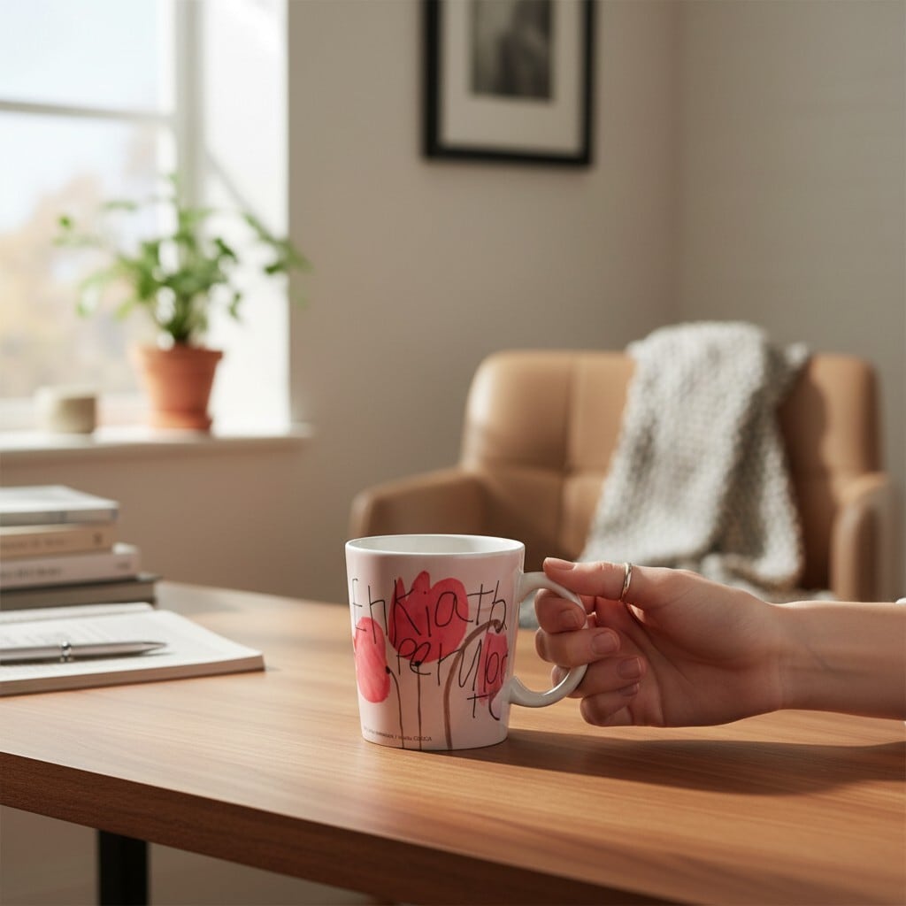 ナチュラルデザインが人気の手編みミトン・ミモザ( スリット付き)