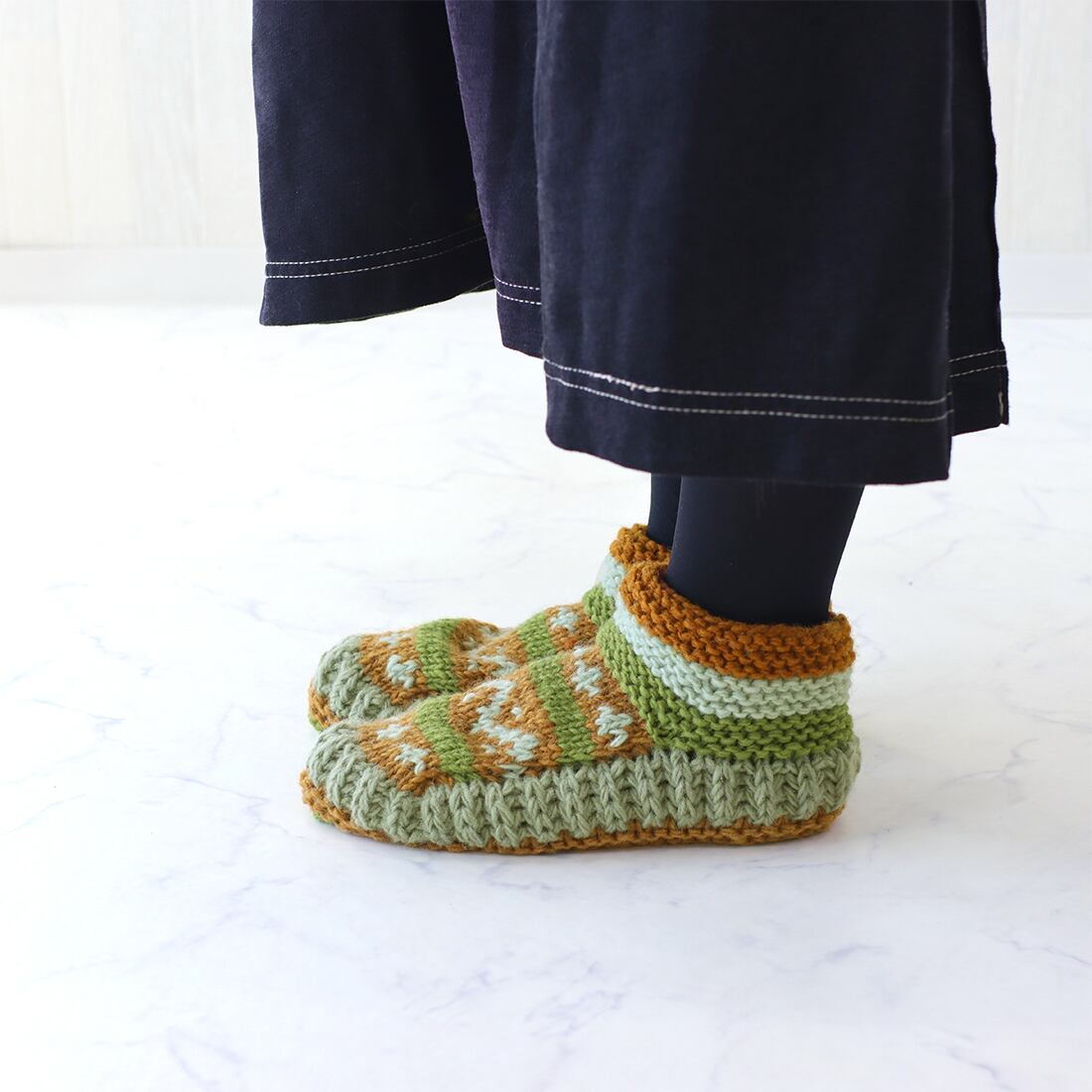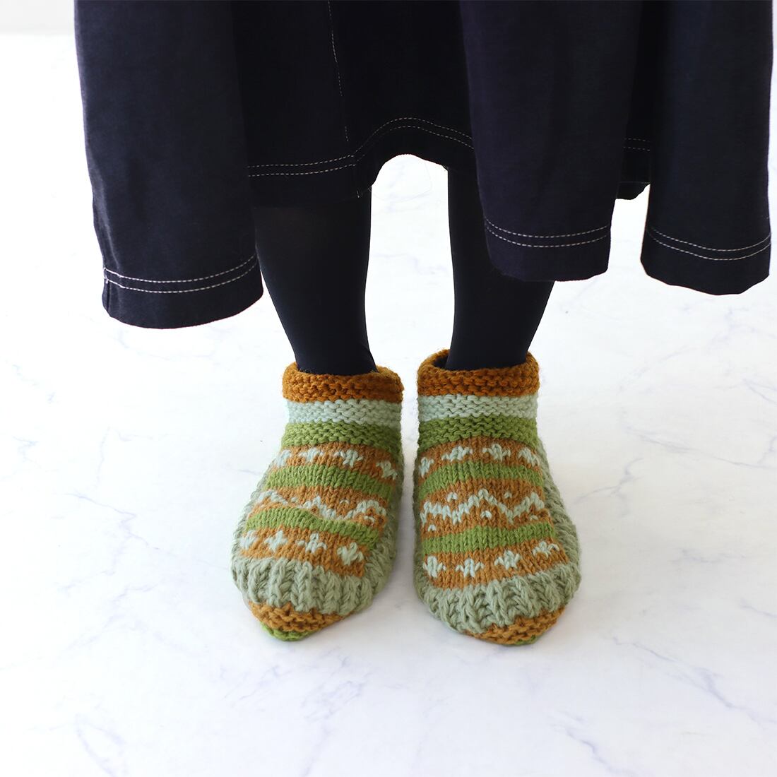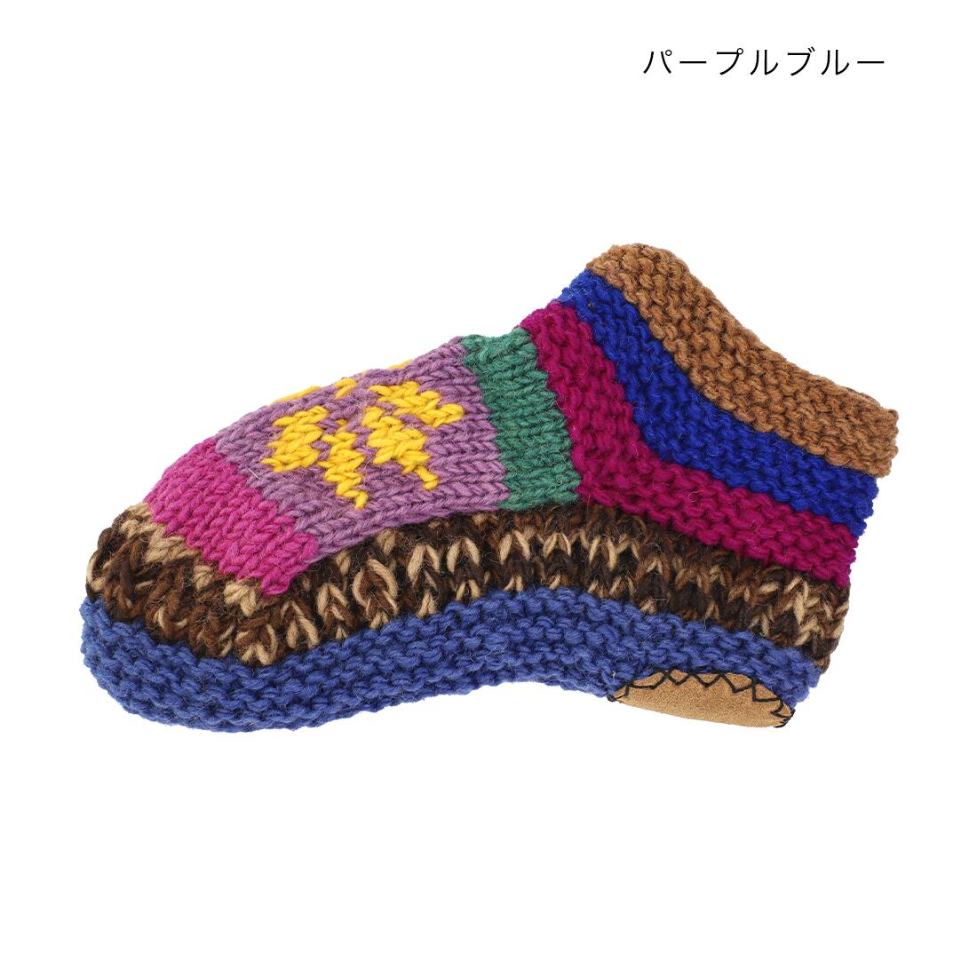 ネパールから届いた手編みルームソックス(グリーンオーク・グレー・パープルブルー)