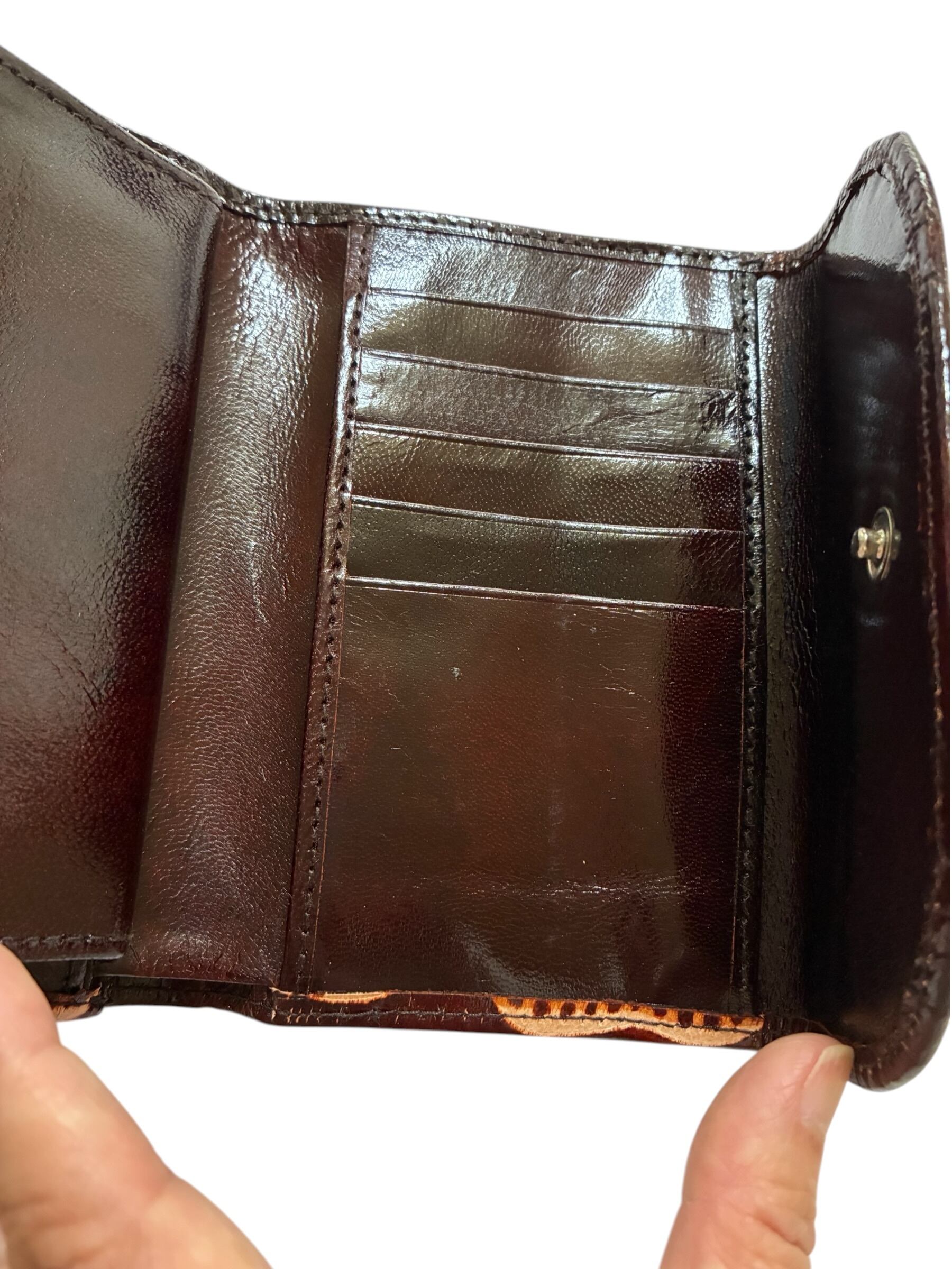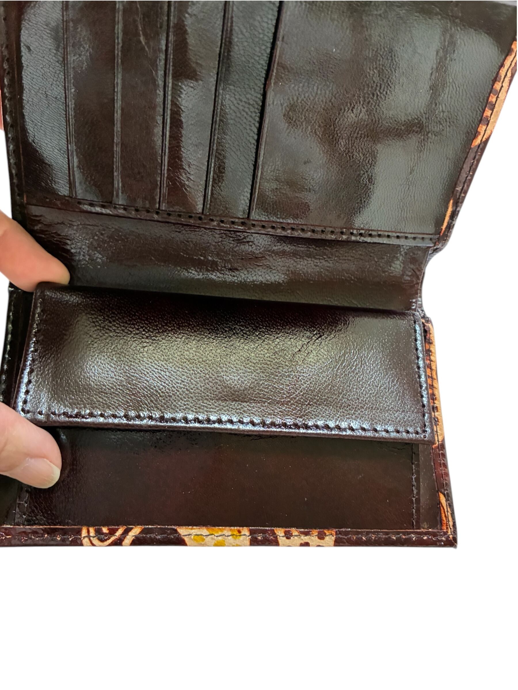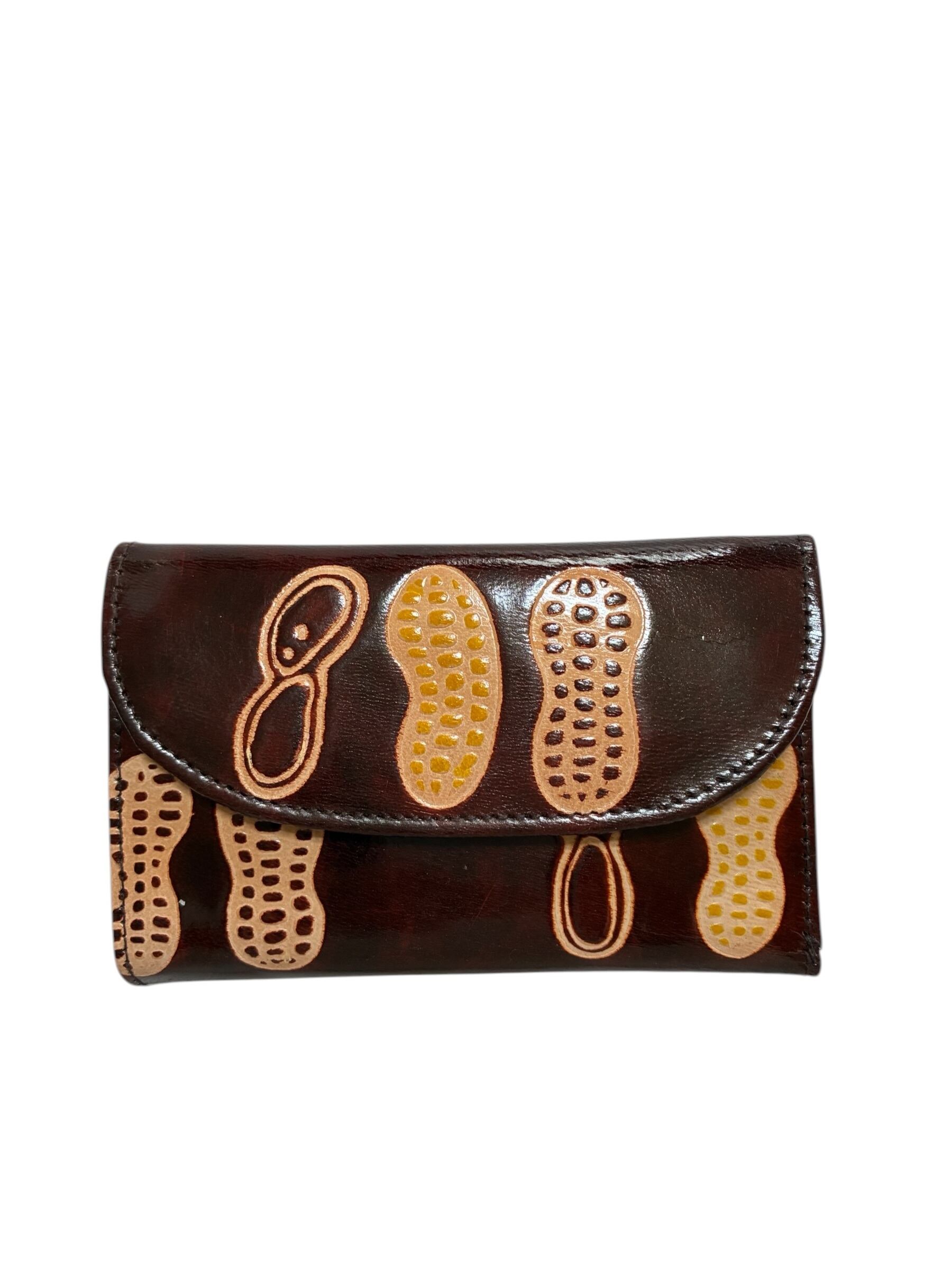 山羊革フラップ付き二つ折り財布・ピーナッツ柄