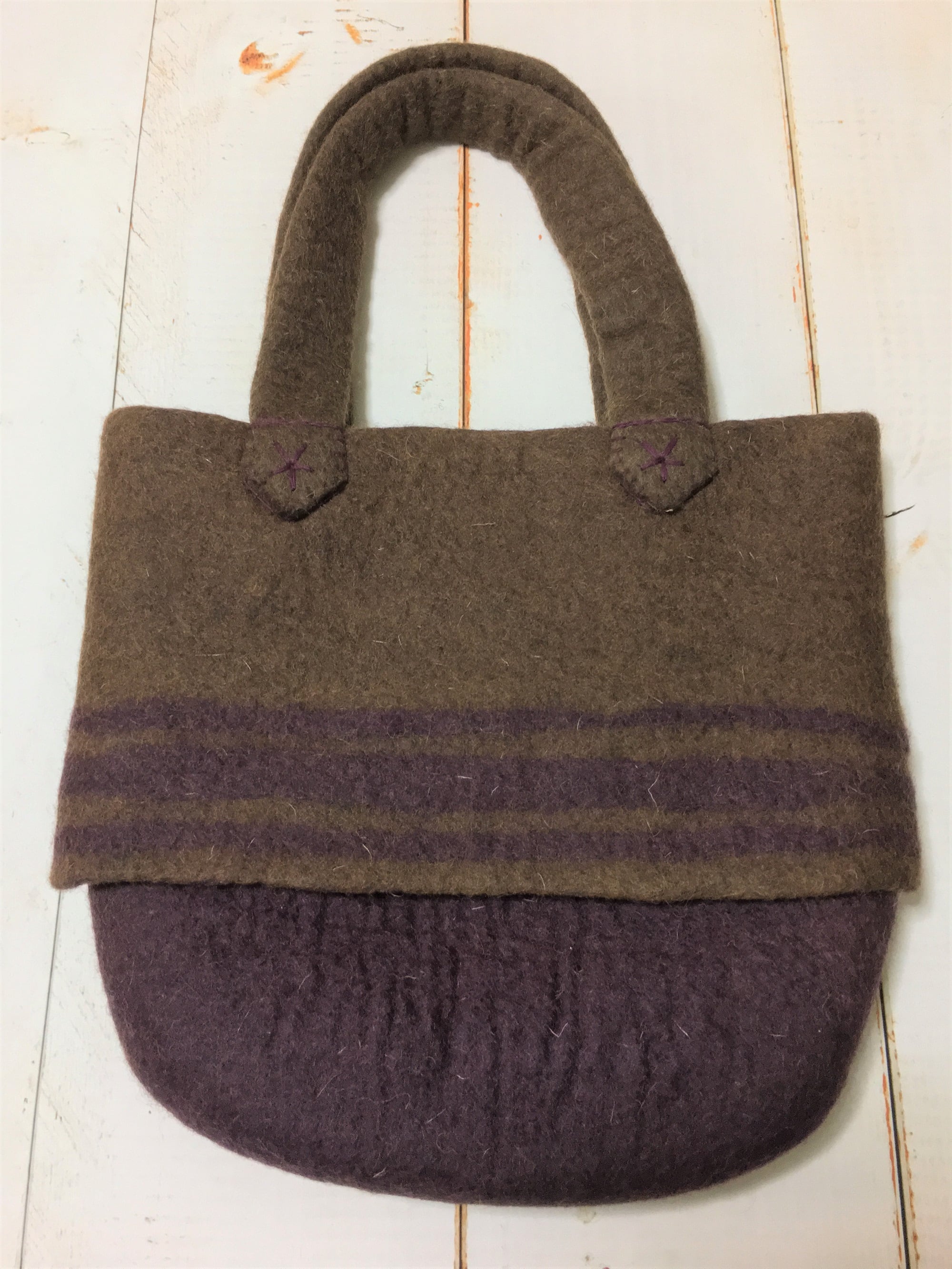2色使いのフェルトバッグは冬のコーディネートのポイントになります。シンプルでかわいらしいデザインが着こなしを個性的に。1点ものがお好きな方への贈り物にもおすすめです。