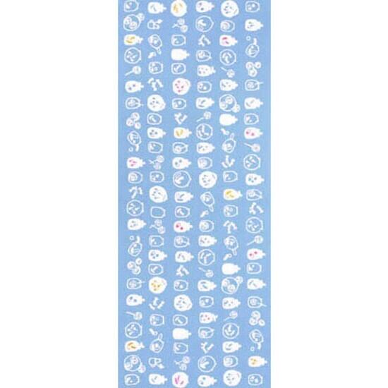 金平糖からジェリービーンズ、棒付きキャンディまで様々なキャンディが並んだポップでいてどこか懐かしさがただよう絵柄です。甘いものを食べたら歯を磨きましょう、というメッセージでしょうか、よく見るとハミガキセットが紛れ込んでいます。