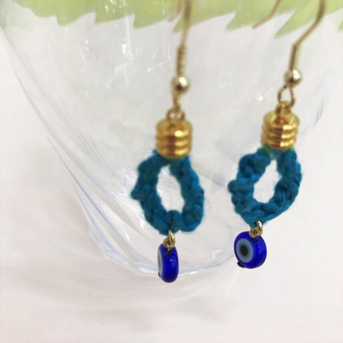 ヨーロッパやアジアでおなじみのラッキーモチーフ「真実の目」のデザインビーズを使用。カジュアルな装いにぴったりなピアスです。