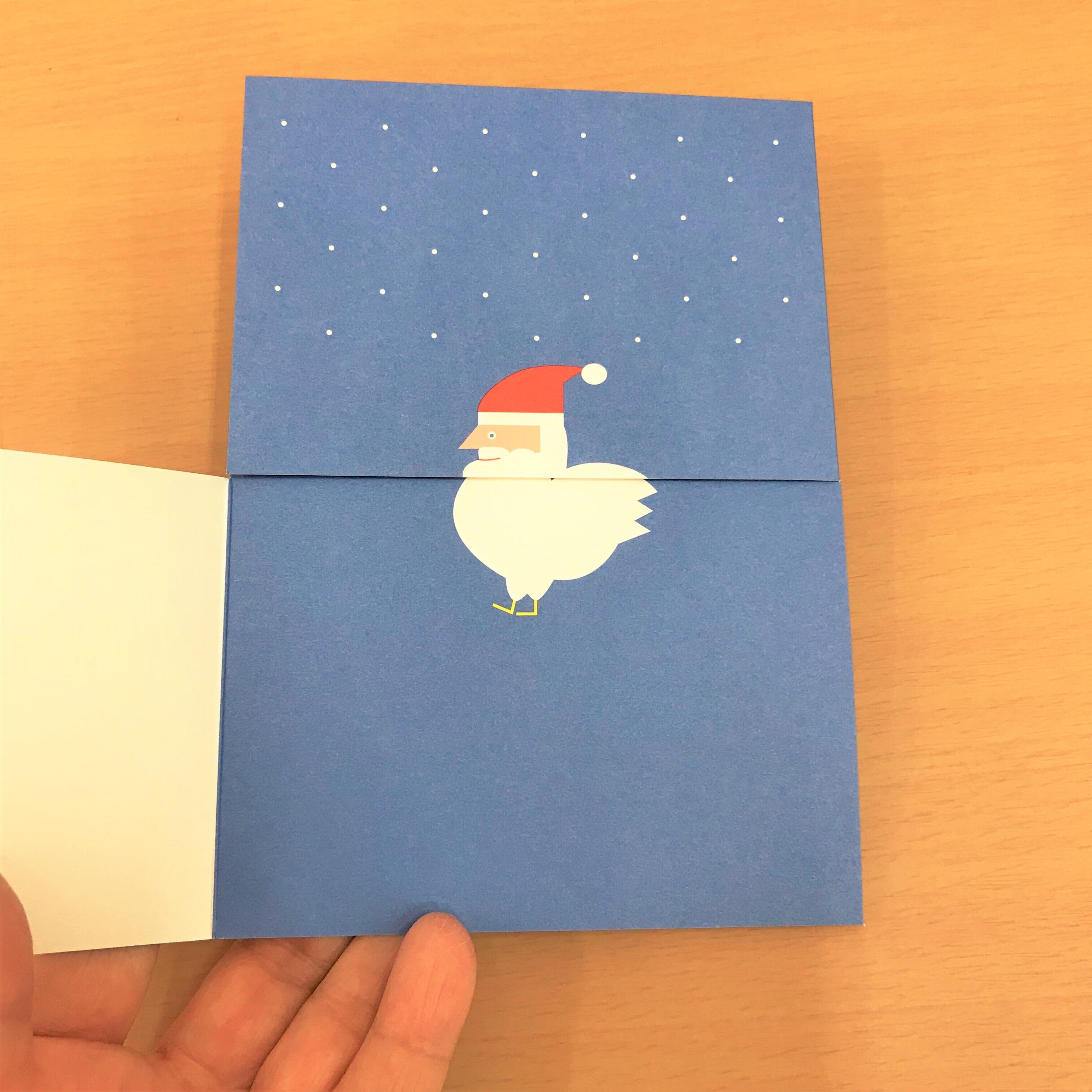 サンタのユニークな変身が楽しい。お子様から大人まで楽しめるクリスマスカードです。