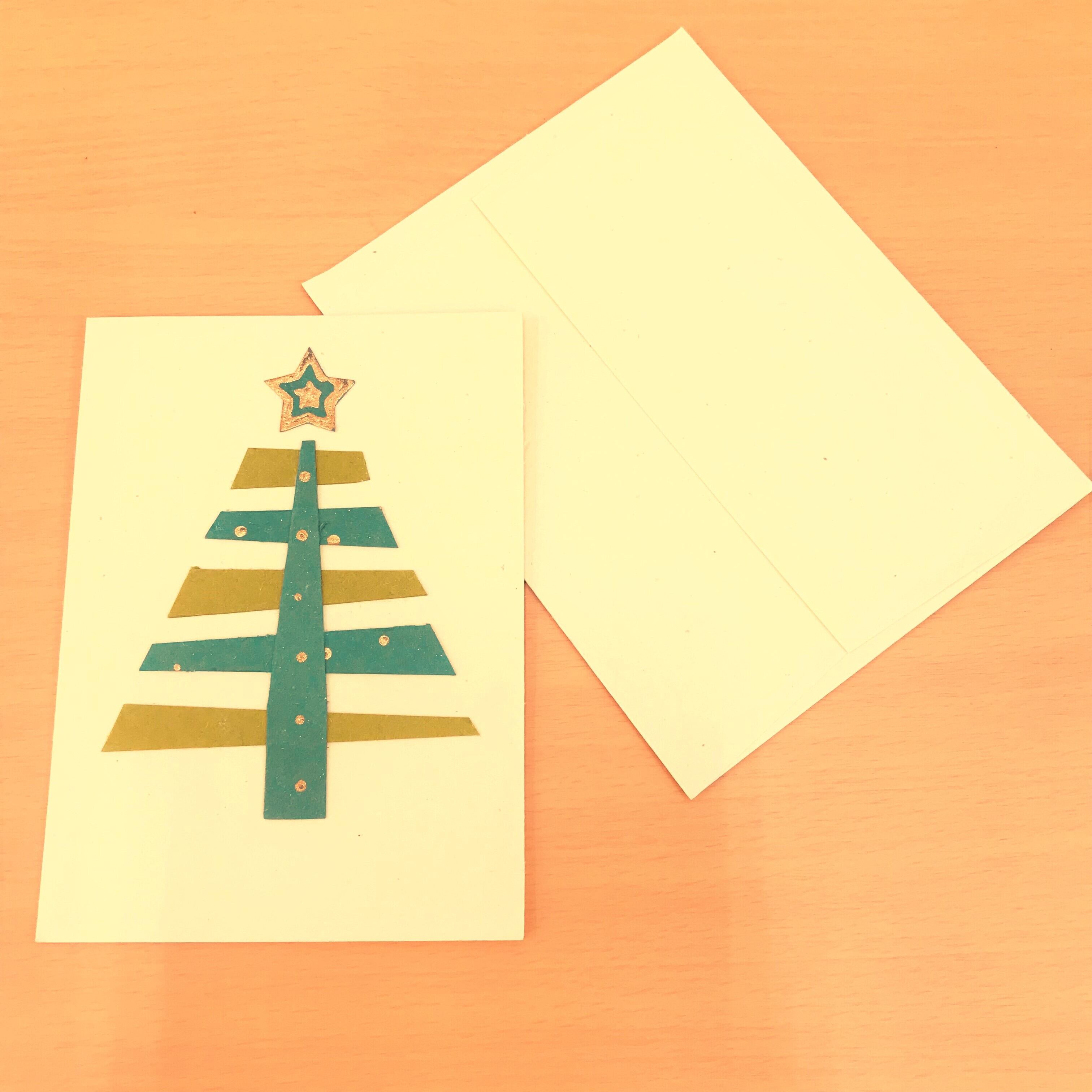 手漉きの紙に同じく手漉きの紙をコラージュした素朴なクリスマスカード。プレゼントに添えるのはもちろん、カードをプレゼントしても。クリスマスのインテリアとして飾っても楽しめるカードです。