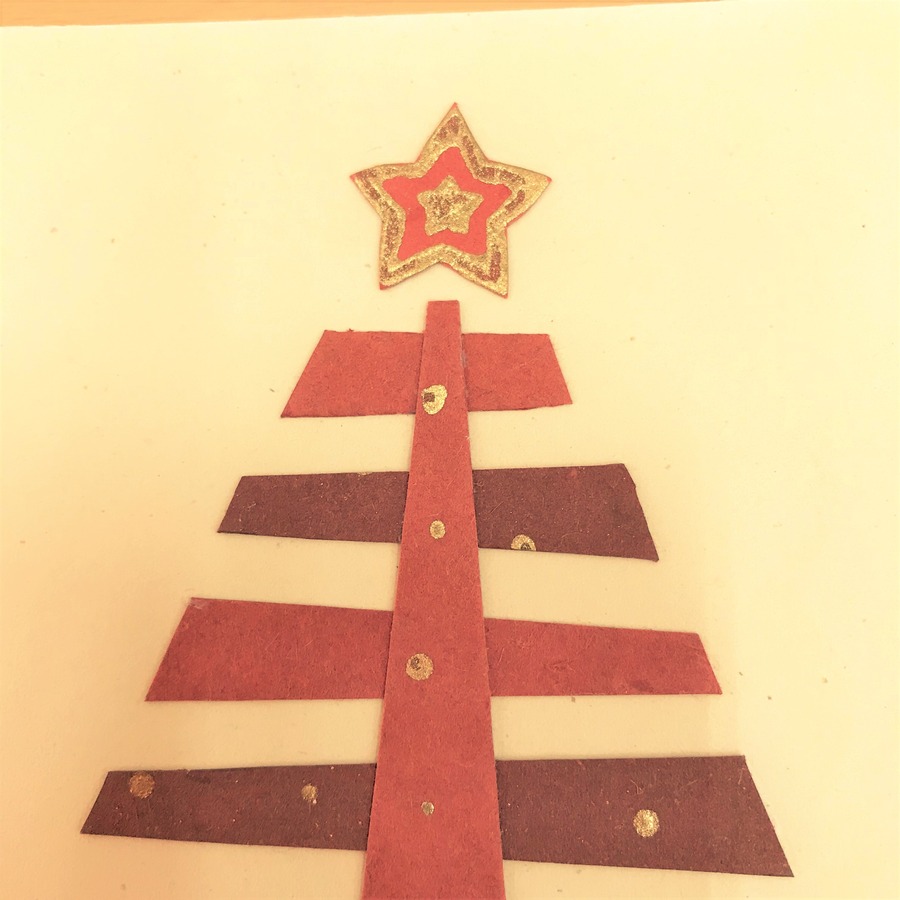 手漉きの紙に同じく手漉きの紙をコラージュした素朴なクリスマスカード。プレゼントに添えるのはもちろん、カードをプレゼントしても。クリスマスのインテリアとして飾っても楽しめるカードです。