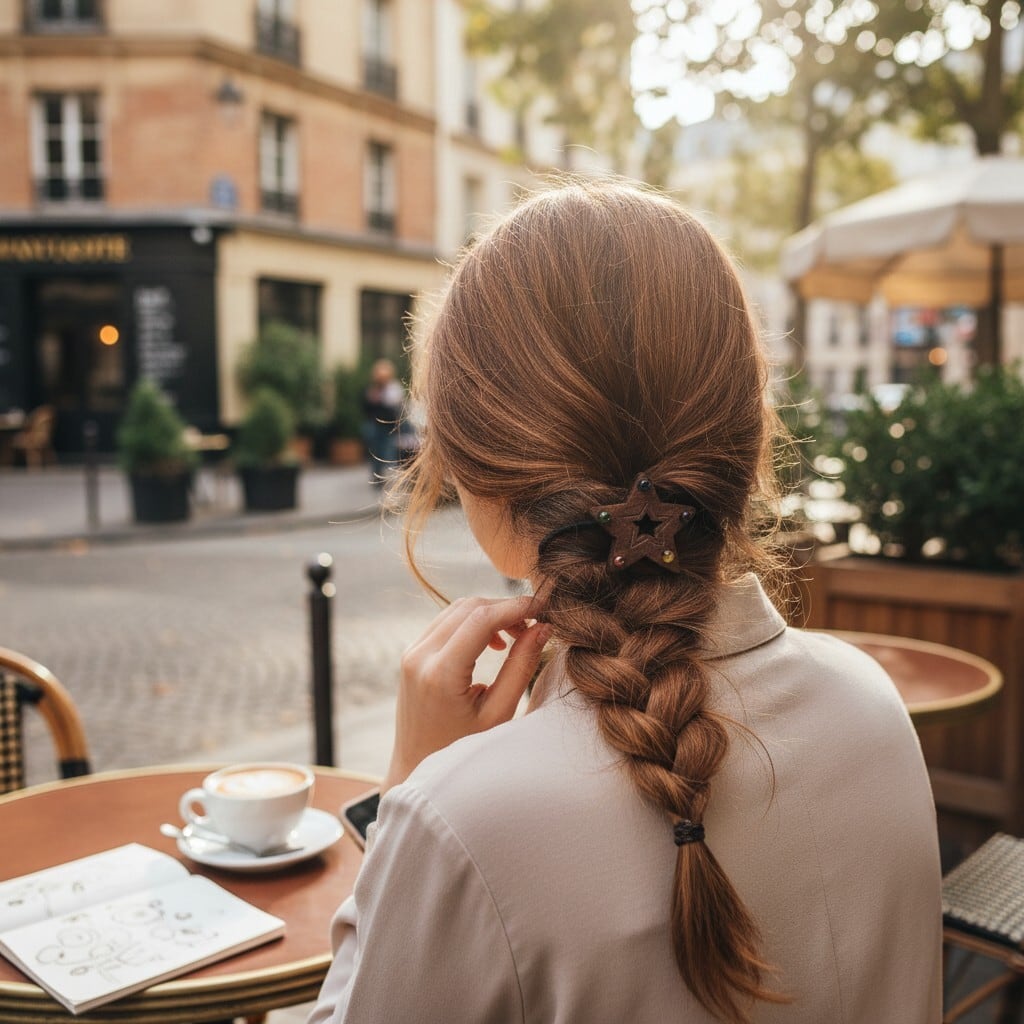 素朴な星のモチーフがリラックス感を感じさせるヘアゴム。大人のまとめ髪のワンポイントにおすすめです。