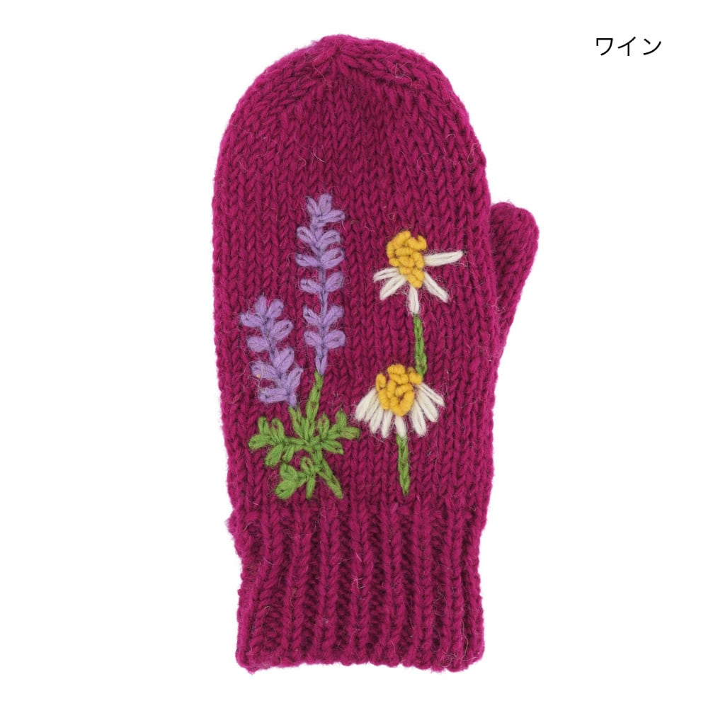 ざっくり感がかわいい♡ネパール製手編みミトン・ハーバル(ワイン)